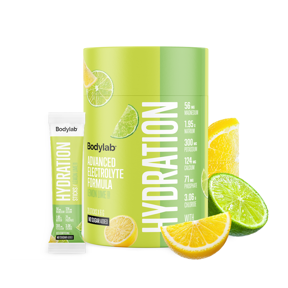 Bodylab Hydration Sticks är skapad för dig som vet att hydrering handlar om mer än bara att dricka vatten. Vi ger dig ett komplett och kompromisslöst hydreringssystem med sex elektrolyter, som har en lång rad vetenskapligt dokumenterade effekter. Du får både magnesium, natrium, kalium, kalcium, klorid och fosfat – plus C-vitamin, vitamin B6 och koffein*. Alltihop noggrant anpassat in i minsta detalj för att upprätthålla vätske- och elektrolytbalansen.
