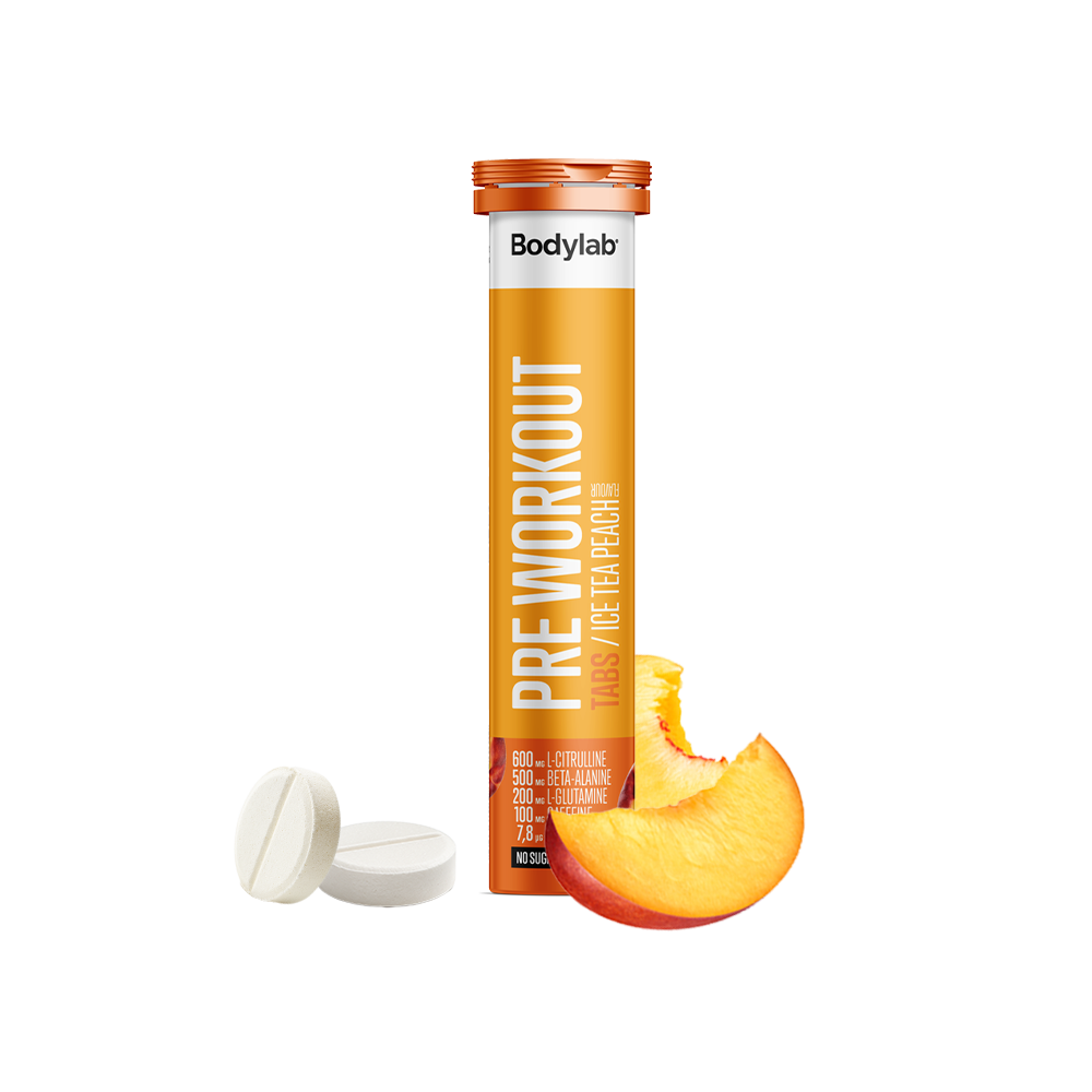 Bodylab Pre Workout Tabs är ett helt nytt sätt att ta din pre-workout. Inga måttskedar. Inga shakers. Inga blandningsförhållanden. Du släpper bara ner en tab i ett glas vatten och får en brusande, fruktig dryck med exakt doserade ingredienser som hjälper dig att prestera ditt bästa under träningen.