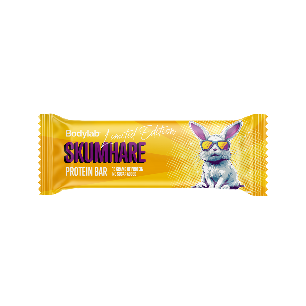 Möt Skumhare Protein Bar – en limited edition-proteinbar inspirerad av påskharar och påskgodis. Det är vår version av ett påskägg. Bara i en version som faktiskt gör något för dina gains. Den innehåller 16 gram kvalitetsprotein och 0 gram tillsatt socker, så du kan lugnt slänga ner en extra bar i träningsväskan.