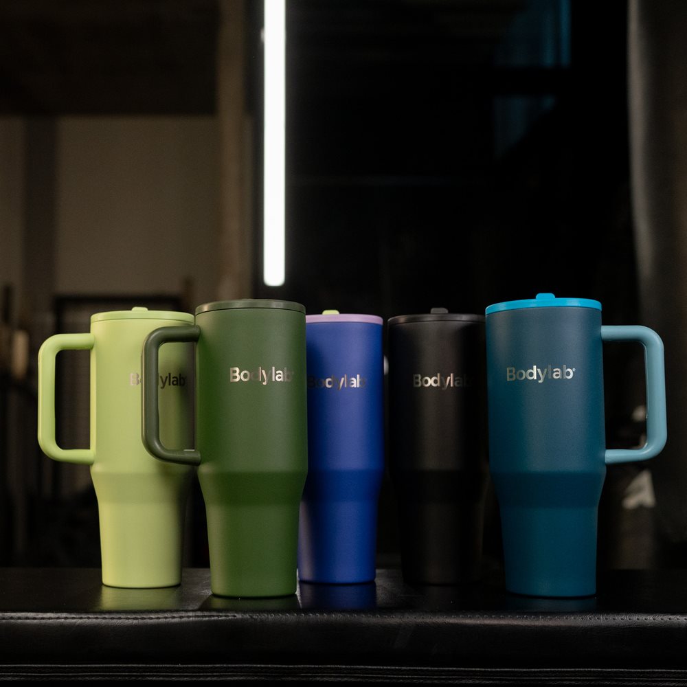 Bodylab Steel Mugg är den ultimata 1100 ml stålmuggen för dig som vill att drycken håller rätt temperatur längre än du själv orkar hålla tempot på gymmet. Den är tillverkad i rostfritt stål och har ett praktiskt handtag, ett läckagesäkert lock och en drickpip som gör det enkelt att ta en klunk utan spill.
