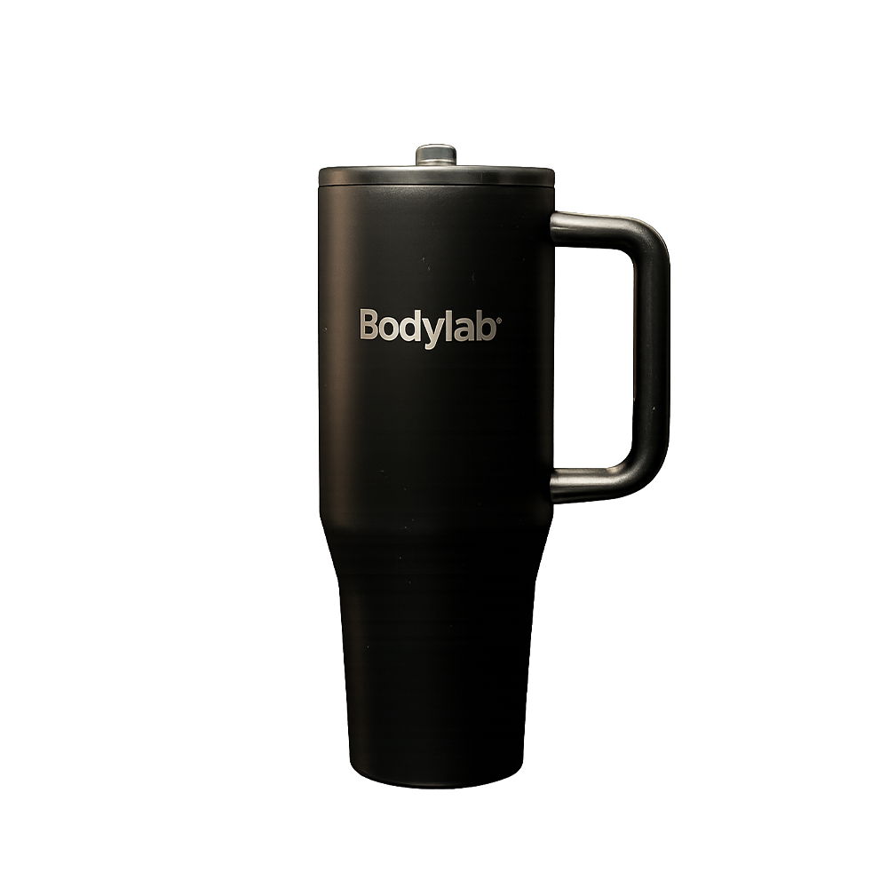 Bodylab Steel Mugg är den ultimata 1100 ml stålmuggen för dig som vill att drycken håller rätt temperatur längre än du själv orkar hålla tempot på gymmet. Den är tillverkad i rostfritt stål och har ett praktiskt handtag, ett läckagesäkert lock och en drickpip som gör det enkelt att ta en klunk utan spill.