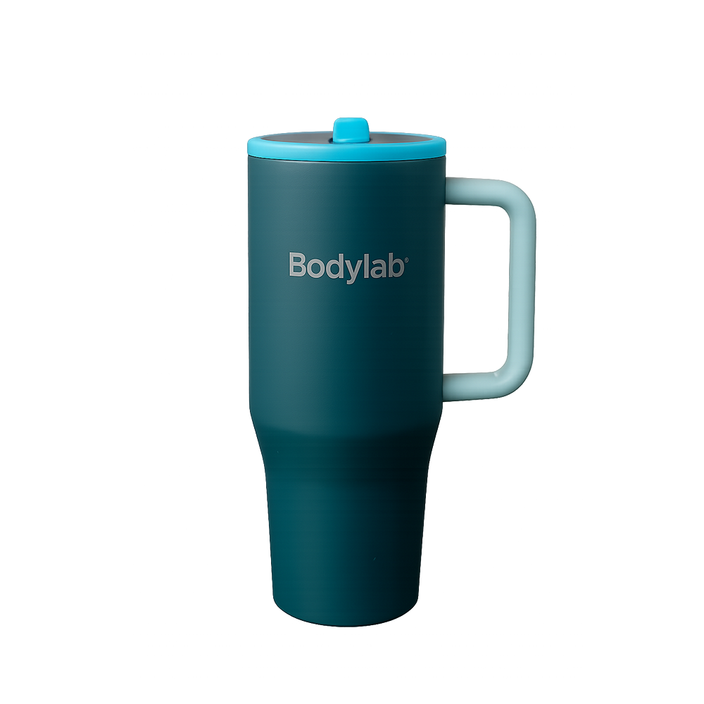 Bodylab Steel Mugg är den ultimata 1100 ml stålmuggen för dig som vill att drycken håller rätt temperatur längre än du själv orkar hålla tempot på gymmet. Den är tillverkad i rostfritt stål och har ett praktiskt handtag, ett läckagesäkert lock och en drickpip som gör det enkelt att ta en klunk utan spill.