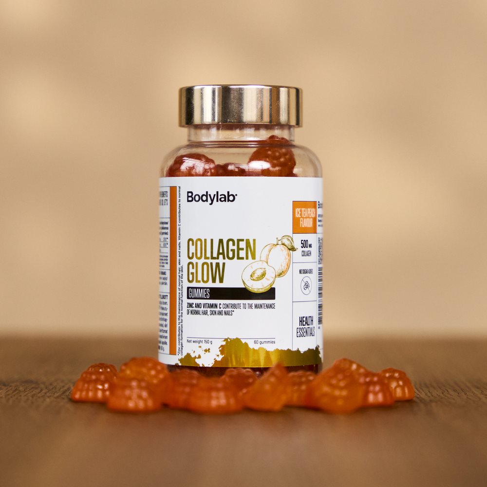 Med Bodylab Collagen Glow Gummies får du ett naturligt förekommande protein som finns i allt från hud, hår och naglar till senor och bindväv. Som en extra bonus har vi lagt till en väl utvald kombination av vitaminer och mineraler som vårdar både din skönhet och fysiska prestationsförmåga.